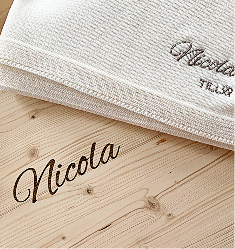 Le nostre pochette, sacchettini, accappatoi e mussoline possono essere ricatamate con un nome, un’iniziale o un logo. A partire da 0,65€/lettera, servizio disponibile su richiesta.